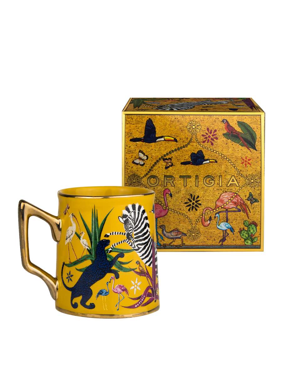 Tazzina in ceramica decorata a mano con serigrafia oro.