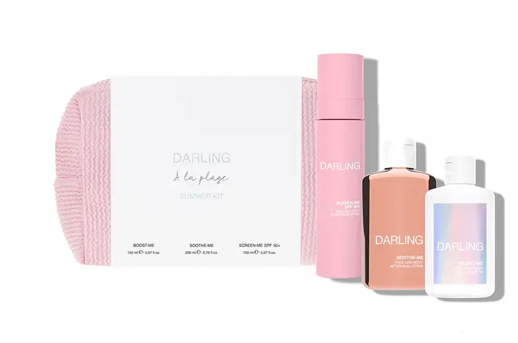 Dai un boost alla tua estate con il meraviglioso DARLING À LA PLAGE Summer Kit: un tris di irresistibili best-sellers Darling in formato full-size, progettato per coccolare la tua pelle dall’inizio alla fine di una giornata di sole. Sia che tu stia preparando la tua pelle per l’esposizione, che desideri proteggerla sotto i raggi caldi o che voglia nutrirla e rinfrescarla dopo una giornata intensa, questo kit è il tuo perfetto alleato.